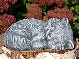 Garden ornamental Figure - Small Cat sleeping, Cast stone, Slate gray by Tiefes Kunsthandwerk GbR