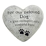 Antique stone design heart shape.."BELOVED DOG"..Measurements: 6cm (2½") tall x 15cm (6") wide x 15cm (6") deep..In loving memory graveside memorial..Suitable for outdoors. Ideal for graveside or garden memorial...