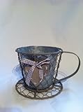 ** ORDER UPTO £60.00 AND PAY JUST ONE POSTAGE PRICE OF £4.50**. Very pretty cup shaped planter in a wire mesh. Finished with a cute heart motif and gingham ribbon.